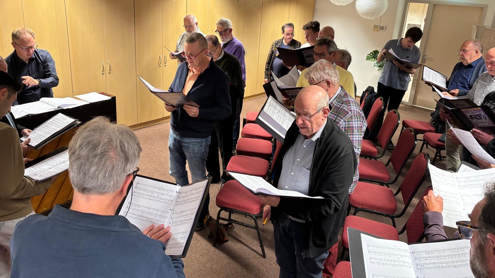 Na wat uitdagingen voor sommigen om een goede parkeerplek te vinden, starte de korte introductie, waarna al snel de keeltjes aangezwengeld werden. Dit d.m.v. de stemtest om te kijken of je bij de hoge of de lage stem hoort en dus aan welke kant je mocht gaan zitten.